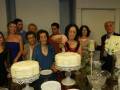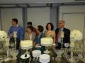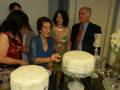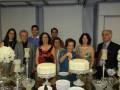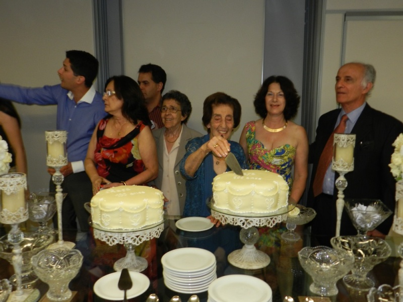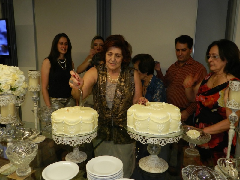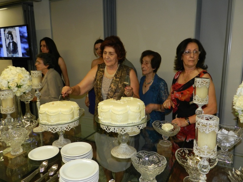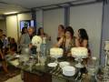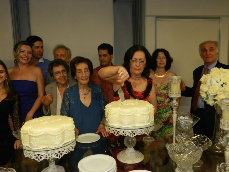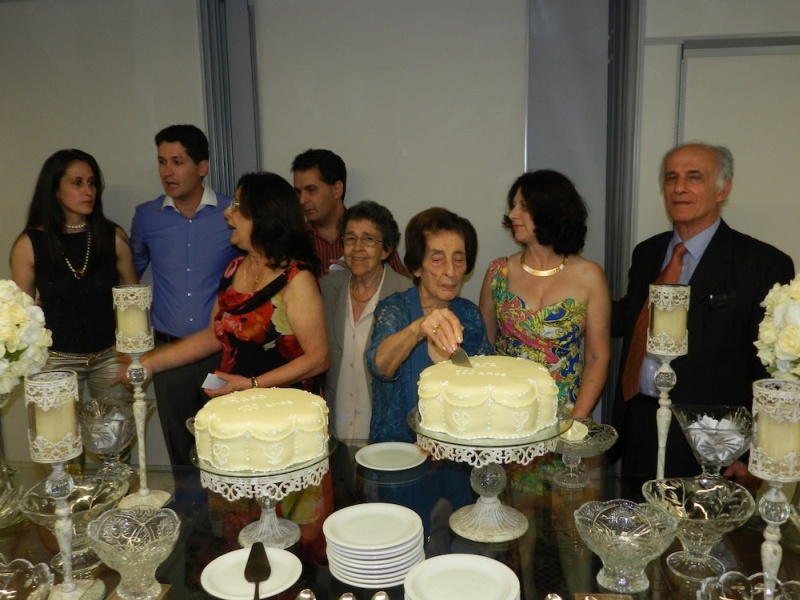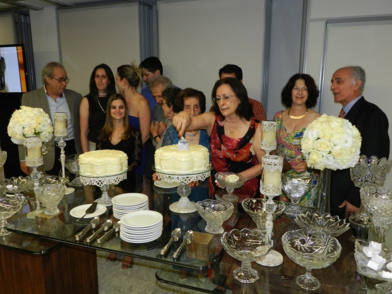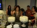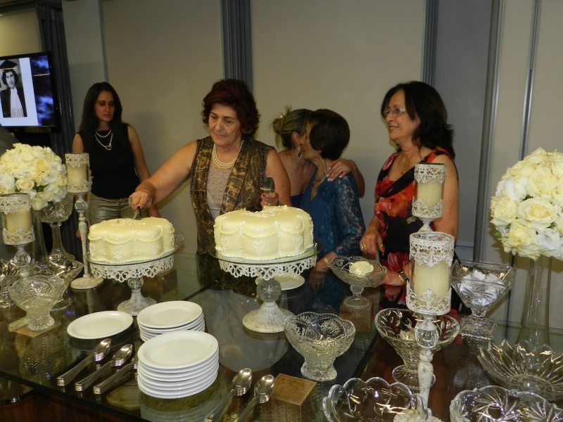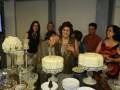 Detalhes da mesa decorada e cenas do corte dos bolos pelas aniversariantes Rafa e Nely.